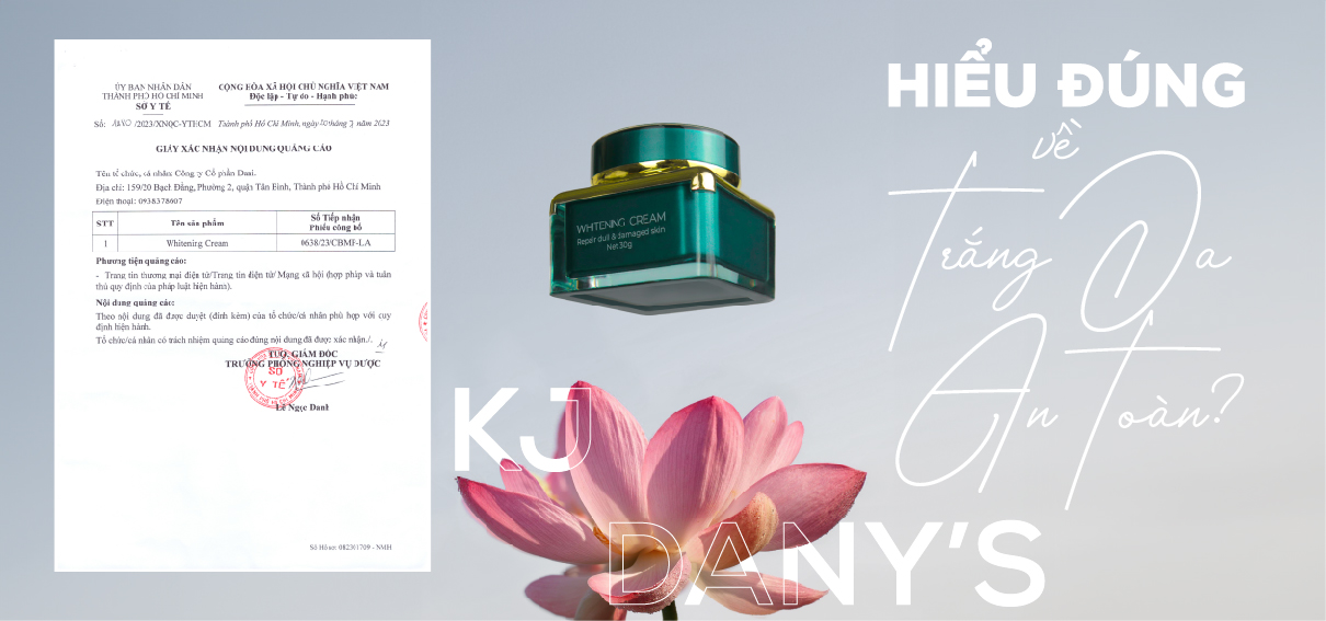 KJDANY’S tự hào sản phẩm Whitening Cream được cấp “Giấy Xác nhận nội dung quảng cáo” bởi Sở Y tế TP. Hồ Chí Minh về các tác dụng làm trắng da vượt trội ngoài ra còn giúp mờ nám, dưỡng ẩm, giảm mụn, mềm mịn và phù hợp với mọi loại da.