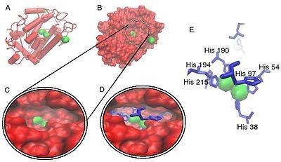 Hình 3: Cấu trúc tinh thể của tyrosinase Trong mô hình, phân tử tyrosinase, các nguyên tử đồng được hiển thị bằng màu xanh lục